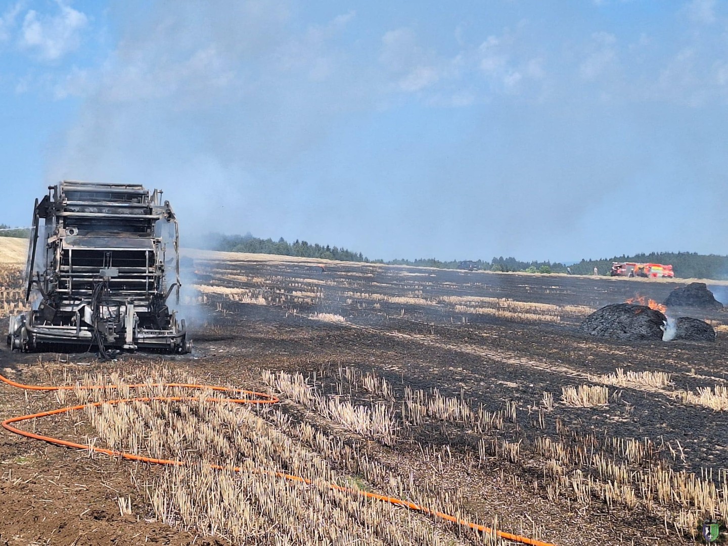Požár, polní porost, tráva - Horní Štěpánov, požár strniště.