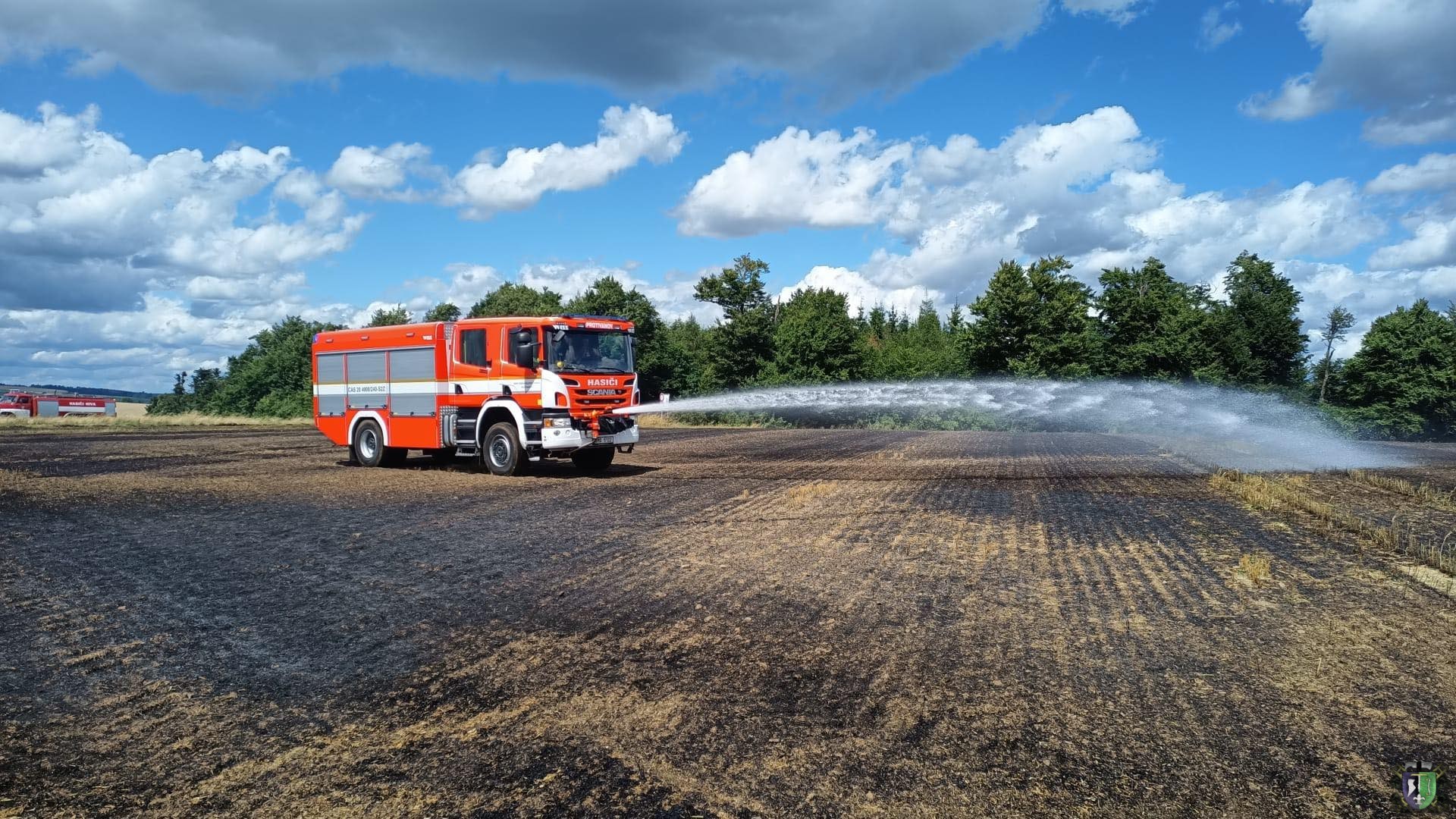 Požár, polní porost, tráva - Drahany, požár strniště.